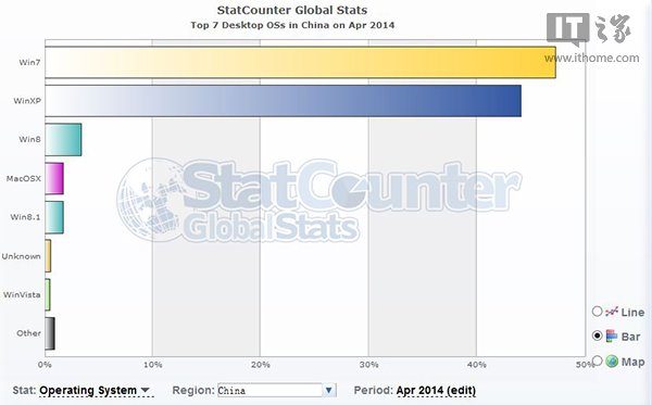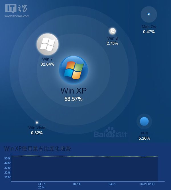 4月的中國:XP據半壁江山(shān)、Win7/Win8小(xiǎo)增