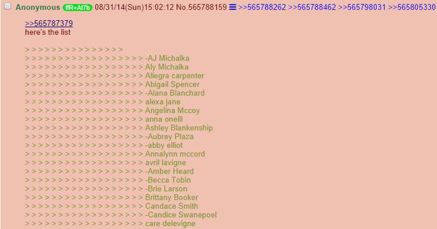 黑(hēi)客揚言,他手中還(hái)掌握着美國女足球星Hope Solo的全套不雅照片。其他有(yǒu)裸照被發布上(shàng)網的女明(míng)星還(hái)包括:Ariana Grande, Victoria Justice 和(hé)Kate Upton 等。女星Victoria Justice表示,網上(shàng)流傳的裸照是假的。